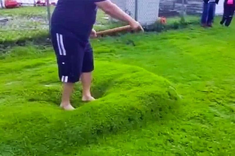 It was like a giant waterbed. He decided to jump and the squishy mound. He actually smiled as he kept jumping on it.