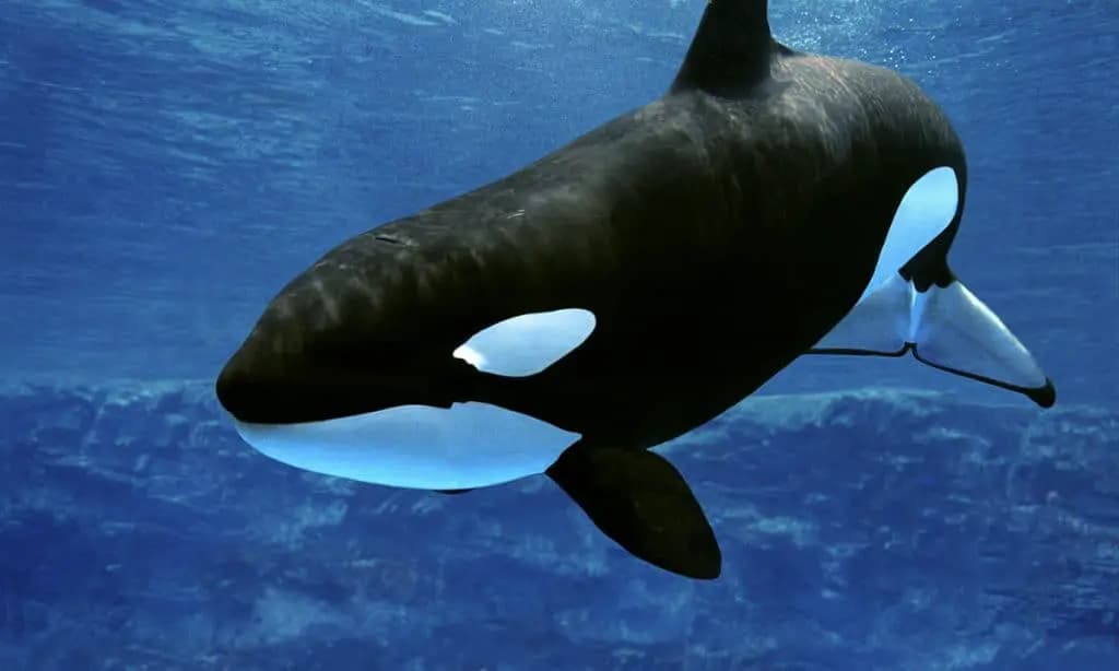 The orca Dalia came swimming by tremendously fast, causing Kevin and all the people watching to flinch. Then they all thought that the animal would swim past him. But right at the point where the special boy was standing, Dalia came to an abrupt stop. She turned in a full circle and face Kevin. The orca even opened her mouth and seemed to smile.